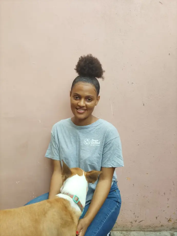 Suzzy é o nosso membro mais recente da equipa! A Suzzy está de momento a aprender o ofício de estética canina (banhos e tosquias), e é também operacional de hotel e creche caninos. Nutre um amor gigante pelos animais, muito meiga e resiliente. Um diamante em bruto!